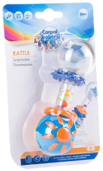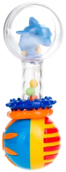 Kolorowa i poręczna grzechotka z ruchomymi elementami zachęca dziecko do ćwiczeń i zabawy, stymulując jego rozwój psychomotoryczny. Dziecku łatwo chwycić ją w rączkach. Ma delikatnie zaokrąglone kształty. Przezroczyste części zabawki zawierają małe, kolorowe elementy, które poruszają się podczas zabawy i wywołują przyjemny dźwięk grzechotania. Przeznaczona dla dzieci w wieku 0 m+.
