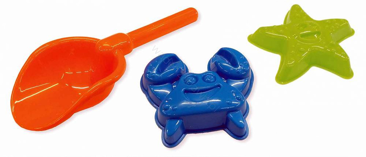 Zestaw Łopatka i 2 Foremki z serii Happy Summer to fantastyczne akcesoria z morskimi motywami do zabawy dla każdego dziecka. Uatrakcyjnią zabawę w piaskownicy, ogrodzie czy na plaży. Zestaw zawiera pomarańczową łopatkę oraz 2 foremki: niebieskiego kraba i zieloną rozgwiazdę. Zabawa w piasku, kopanie tuneli, budowanie zamków, ozdabianie budowli przy pomocy kształtów z foremek to jedne z bardziej ulubionych zajęć najmłodszych pobudzające ich kreatywność i wyobraźnię. Bawiąc się w ten sposób dzieci rozwijają swoje umiejętności motoryczne, manualne, doskonalą precyzję ruchów, koordynację wzrokowo-ruchową oraz myślenie przestrzenne. Jest to również bardzo dobry moment, aby zaprosić do zabawy rówieśników, co ma pozytywny wpływ na rozwój umiejętności społecznych naszych pociech. Komplet wykonany z trwałego i wytrzymałego na różne warunki atmosferyczne, nietoksycznego i bezpiecznego dla dzieci tworzywa.