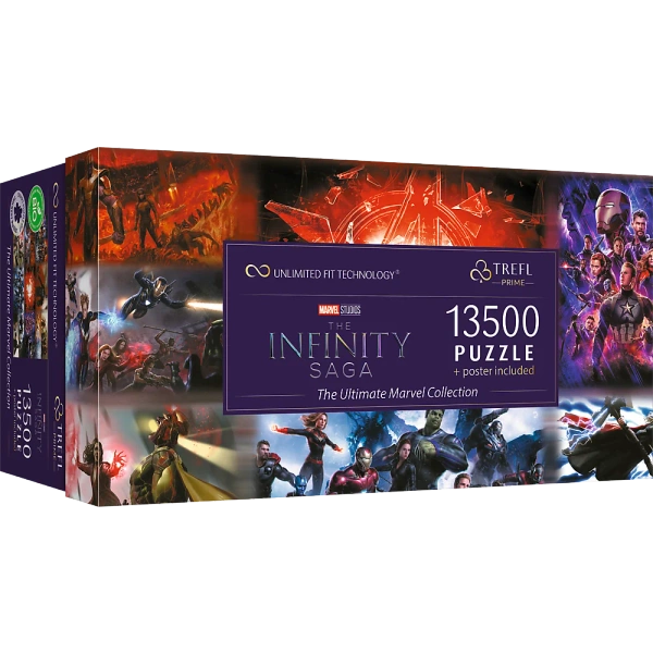Odkryj puzzle Trefl Prime UFT składające się z imponujących 13 500 elementów! Ułóż ogromną układankę przedstawiającą wspaniałe przygody bohaterów z uniwersum Marvela.