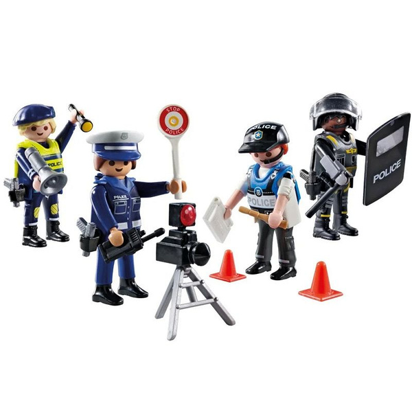 Playmobil Zestaw figurek policjantów. Odkryj różnorodność pracy w policji! W czyją rolę wcielisz się dzisiaj? Niezależnie od tego, czy jesteś w terenie, na ulicy podczas zatrzymania drogowego, w laboratorium podczas śledztwa kryminalnego, czy dowodzisz operacjami specjalnymi: dzięki temu zestawowi nic nie stoi na przeszkodzie wyobraźni i odgrywaniu różnorodnych ról w pracy policji!