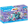 Na miejsca, gotowi... Jednorożec bez wahania startuje w swoim słodkim i kolorowym gokarcie z silnikiem typu pull-back. Lśniące włosy jednorożca, fioletowe balony z gwiazdami i błyszczące kryształy napędowe oczarowują przeciwników. Szybkie wyścigi, jazda wokół przeszkód lub szalone akrobacje - PLAYMOBIL Funstars są gotowe do startu!