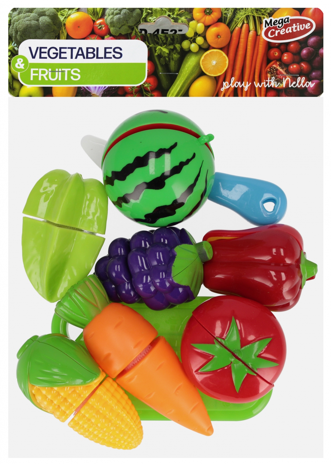 Zalety produktu Dzięki Zestawowi do krojenia MEGA CREATIVE, Twoja pociecha pozna różne rodzaje Owoców i Warzyw. Wspólna zabawa na pewno zaowocuje wspaniałymi chwilami podczas wspólnego gotowania smakołyków w kuchni W zestawie zajdują się deska do krojenia, nóż oraz 7 różnych owoców i warzyw - różniących się w zależności od zestawu. Wszystkie Owoce oraz Warzywa podzielone są na dwie części, połączone ze sobą za pomocą rzepów, co imituje proces ich krojenia. Produkty wykonane z plastiku.
