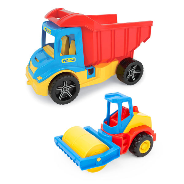 Wywrotka z serii Multi Truck to doskonała zabawka dla wszystkich małych wielbicieli pojazdów mechanicznych, a zwłaszcza budowlanych. Charakteryzuje się realistycznym odwzorowaniem, solidnym wykonaniem, lekkością wytrzymałej konstrukcji oraz łatwością sterowania. Umieszczony z przodu pojazdu zaczep umożliwia zamontowanie sznurka, linki do ciągnięcia. Duża, kolorowa naczepa umieszczona na pojeździe pomieści nie tylko inne zabawki, ale też przewożony piasek czy śnieg, które łatwo wyładować dzięki ergonomicznej konstrukcji. W zestawie znajduje się dodatkowo drugi, mniejszy pojazd – walec z obrotowym bloczkiem, realistycznie naśladujący prawdziwą maszynę budowlaną. Pojazdy wykonane są z wysokiej jakości bezpiecznego dla najmłodszych dzieci tworzywa sztucznego.