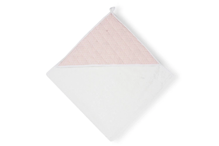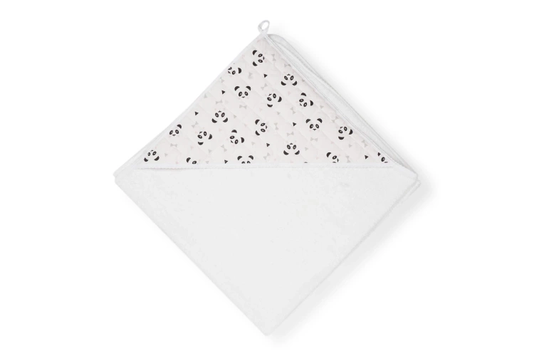Duże, miękkie okrycie kąpielowe Frotte białe wykończone kroszetką w pandy: