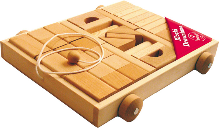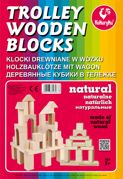 Kukuryku Klocki drewniane naturalne w wózku
