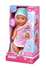 Lalka - brudny bobas z funkcją czyszczenia brudnej buzi i z wodoodpornym ciałem. Dzięki tej ostatniej własciwości może się kąpać razem z dziećmi. Idealnie nadaje się do zabawy i zabierania ze sobą pod prysznic i do wanny. Na ustach lalki wciąż pozostają plamy po marchwi, które dzieci muszą zmyć. Lalkę można czyścić ciepłą wodą (od 31C°). Zabawka będzie miła w dotyku i ciepła po kąpieli. Można ją wycierać do sucha. W zestawie znajduje się również ręcznik kąpielowy z kapturem. Dopełnieniem zestawu jest gąbka do mycia w kształcie serca.