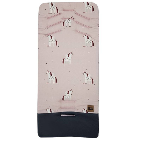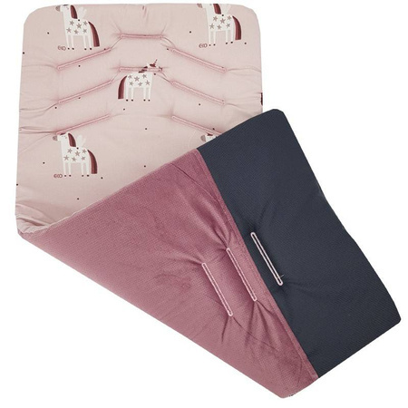 Wkładka do wózka spacerowego z pianą MEMORY - zapewnia największy komfort podróżowania dzięki specjalnym właściwością piany MEMORY – dobrze wytrzymuje przeciążenia grawitacyjne. Może być użytkowana obustronnie. Wkładka ma uniwersalne zastosowanie w każdym wózku spacerowym. Ze względu na różne szerokości pasów zabezpieczających w wózkach otwory są zaszyte. Żeby dostosować produkt do wózka, należy przeciąć otwory w odpowiednich wyhaftowanych punktach.