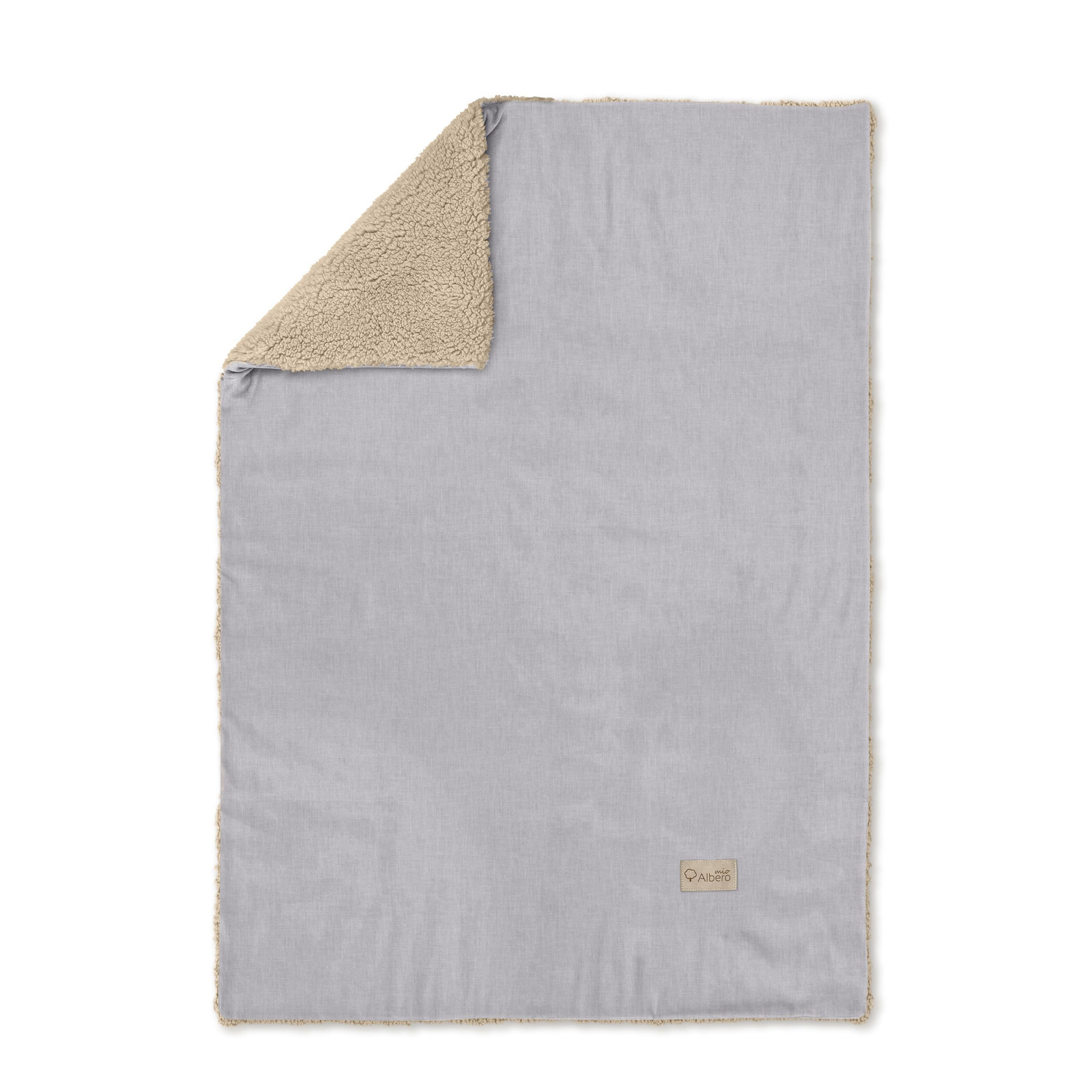 Kocyk z jednej strony wykonany jest z miękkiego i delikatnego weluru bawełnianego, który jest przyjazny dla wrażliwej skóry dziecka, a z drugiej strony zastosowaliśmy wyjątkowo puszystą dzianinę teddy, oferującą przyjemne otulenie i ciepło.